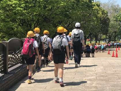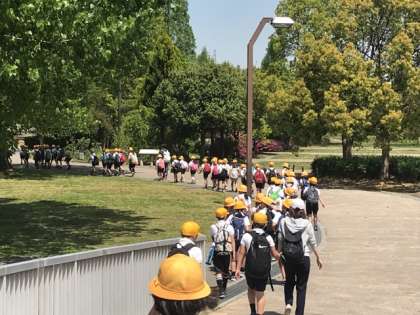 遊具でたっぷり遊んでお腹も減ってきたので、お弁当を食べる芝生広場に移動しています。