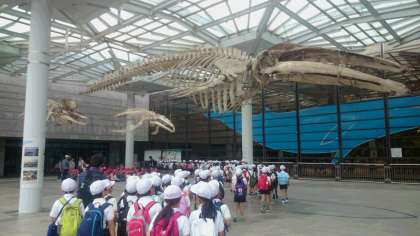 自然史博物館では、入り口前にあるクジラの化石にびっくり!!