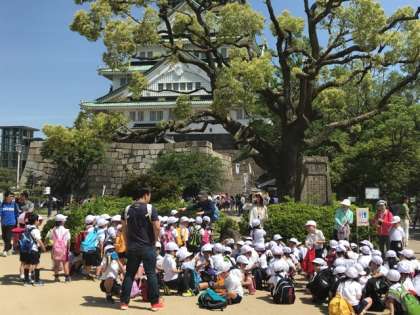 天守閣に到着。子どもたちからは、「デカ!」という声が聞こえてきました。