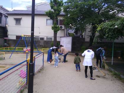 5月20日にPTAの方々と子どもたちで公園清掃を行いました。