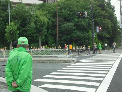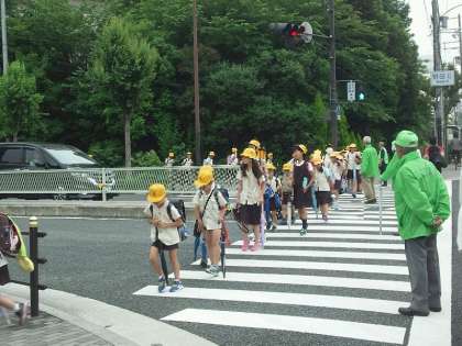 見守り隊の方々は、信号が青になって横断中の子どもたちにも声をかけてくださっていました。ありがとうございます。