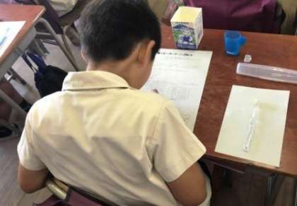 4年生は、歯科校医先生と歯科衛生士さんをお迎えし、むし歯の予防について、教えていただいた後に、歯に、フッ化物を塗布してもらいました。