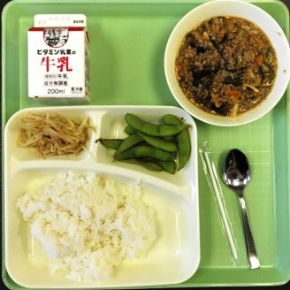 9月5日(水)の献立は マーボー茄子 もやしのごま酢あえ 枝豆 ごはん 牛乳 でした。