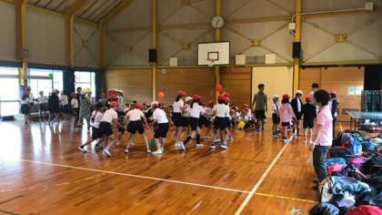 波打つ湖面ですテンション上がる子どもたちですが、気温も22度低め。服が濡れて風邪をひいてもいけないので、早めに切り上げ、体育館でゲーム大会。