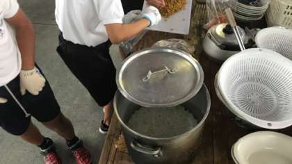 続々とご飯が炊き上がりました。やったあ と拍手歓声の子どもたちです。