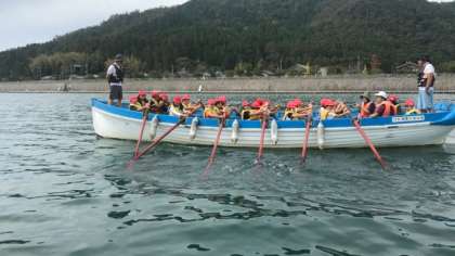 2号艇に負けじと、大きな声で号令をかけ進んでいます。こちらも息が合って櫂の動きが揃ってきました。