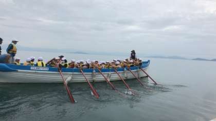 2号艇に乗ったD班です。だいぶ揃うようになってきました。揃った時には、グッと前に進む感覚がわかってしたようです。
