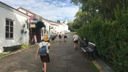 子どもたちに人気のアトラクションは東に固まっています。西端のフェリスクルーズに行くのを必須とすることで、子どもたちはスペインの街並みを感じながら歩くことができました。