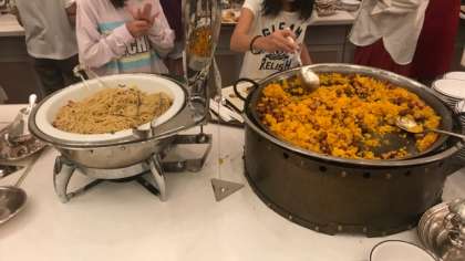 塩焼きそば、ウィンナーのパエリア、サラダ、フルーツ&デザート、カレー、スープ巻き寿司もあります。