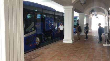 予定より5分遅れ、8時5分にホテルを出発しました。ホテルの方に見送っていただきました。