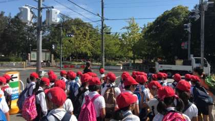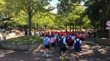 気持ちの良い秋晴れ。春の遠足はお天気が良くなかったので、今日は春の分も楽しく活動できそうです。