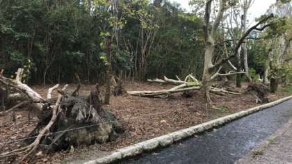 自然文化園の中を秋をたっぷり感じながらのんびり歩いています。ただ、あちこちに台風の傷跡が・・