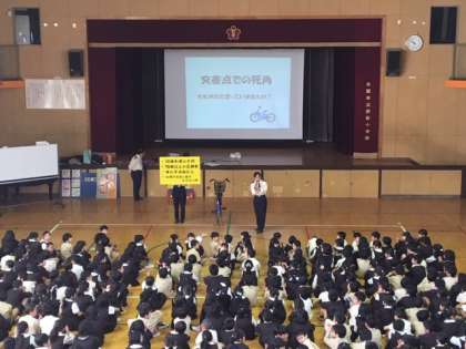自転車の乗り方・交通ルールや、車の死角について理解を深めました。