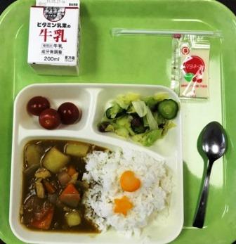 6年生のカレーには、調理員さんが卒業のお祝いにとラッキーにんじんを作って入れてくれました。