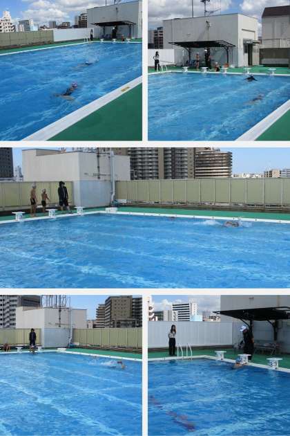 明日の大阪市児童水泳記録会に出場する子どもたちが集まり、前日練習を行いました。