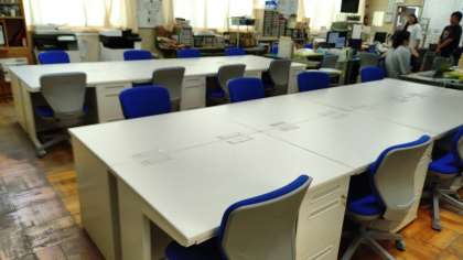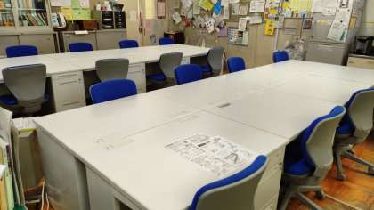 白い机に変わったので、職員室の雰囲気がずいぶん明るくなりました。