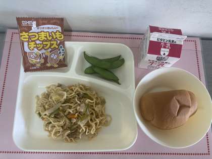 豚肉を主材にしたソース味の「焼きそば」は、子どもたちに人気の献立です。