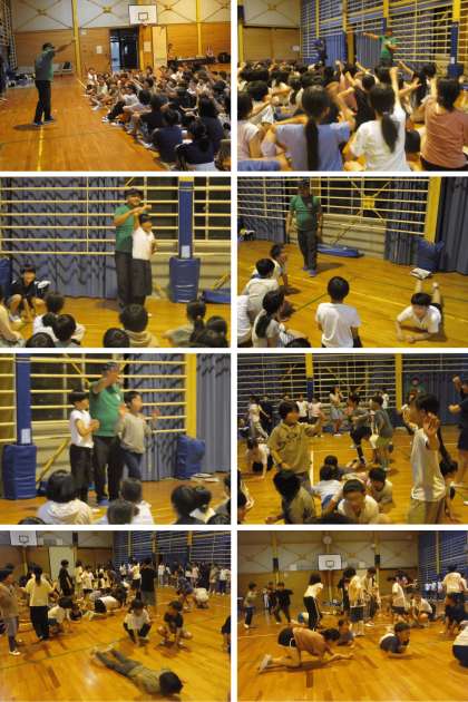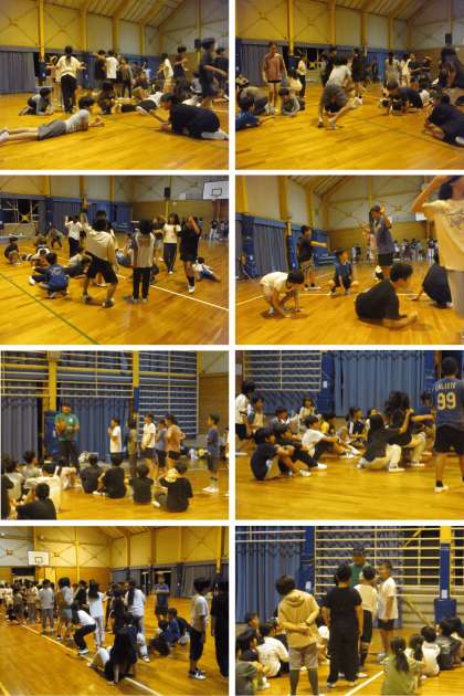 キャンプファイヤーを1日目に繰り上げて行ったため、今日の夜は体育館で指導員の方によるレクリエーションを行いました。