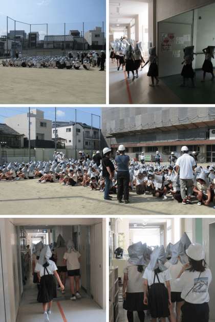 地震が起きた時は、「速やかに机の下などに隠れ、頭を覆う」「揺れが収まったらすぐに外へ逃げる」「津波が来ると分かったら、すぐにビルなどの高い建物の3階以上に避難する」ことを意識して行いました。