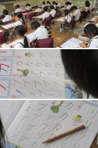 国語科の時間は、カタカナの「リ」や「カ」などを学習しました。