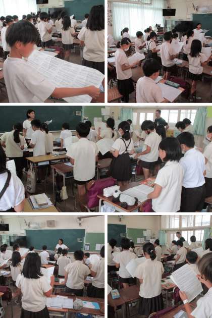 音楽科の時間は、合唱曲「おおさかのまちマーチ・まちまちのまち」をみんなで練習しました。
