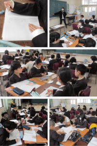 図工科の時間は、絵の具の「にじみ」や「ぼかし」などの技法を使って、魚の絵に着色しました。