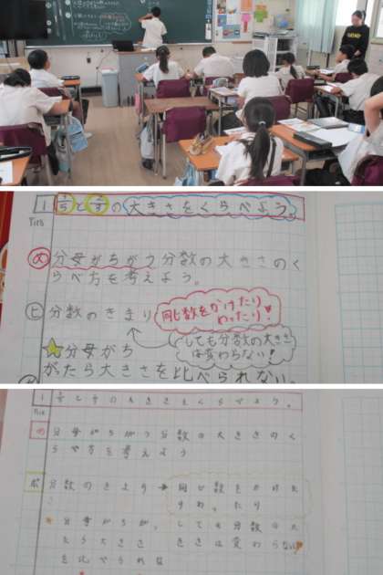 算数科の時間は、3/5と2/3の大きさを比べる方法を考えました。