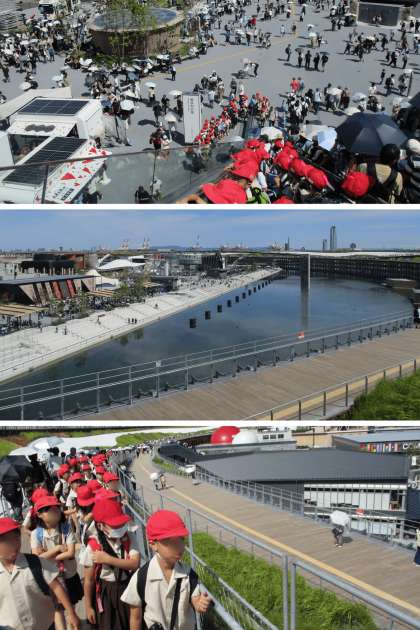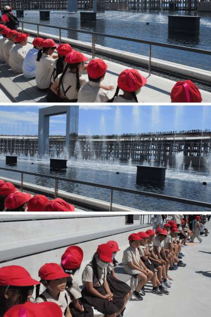 3年生は噴水ショーを見て、大屋根リングの上を歩きました。