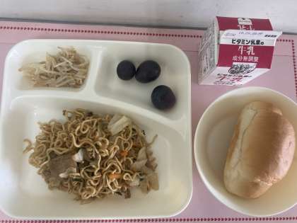 9/25(木)の給食は、ごはん、牛乳、鶏肉の塩こうじ焼き、さつまいものみそ汁、きゅうりの甘酢あえです。