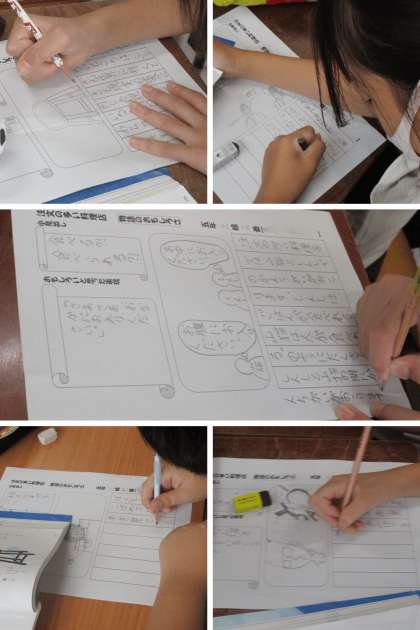 今日は、物語から読み取ったおもしろいと思った表現についてワークシートにまとめました。