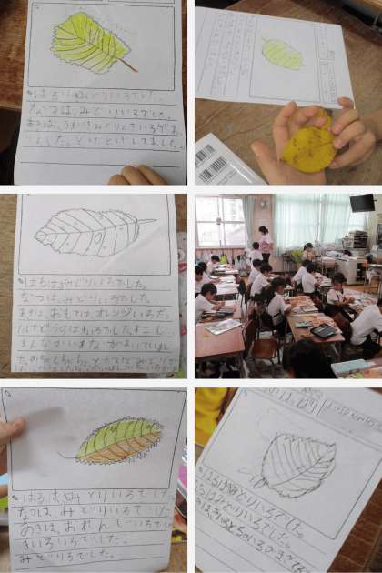 生活科の時間は、桜の葉を観察し、ワークシートにまとめました。