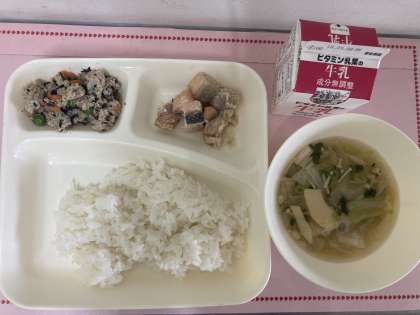 9/29(月)の給食は、レーズンパン、牛乳、カレーマカロニグラタン、豚肉と野菜のスープ、みかん(缶)です。