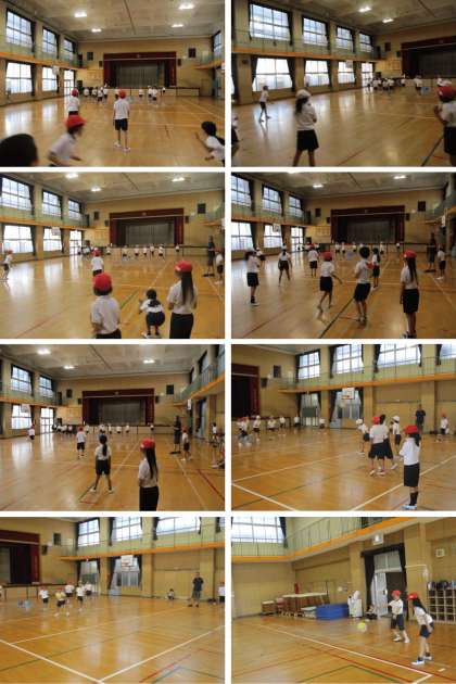 今日の「なかよしタイム」は、「フリスビーでつなげよう」。