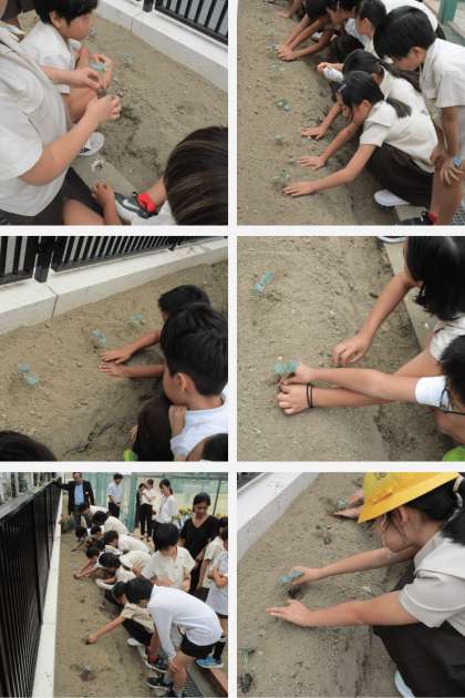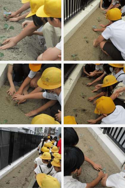 ブロッコリーについての知識や植え方、育て方などを教えていただいた後、学習園にブロッコリーを植えました。