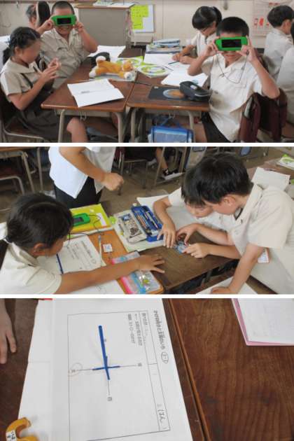 今日は、遮光板の使い方やかげの向きを確かめる観察装置の準備をしました。