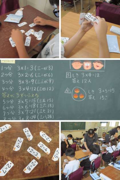 算数科の時間は、「3×1」から順に、3の段の九九の作り方を考えました。