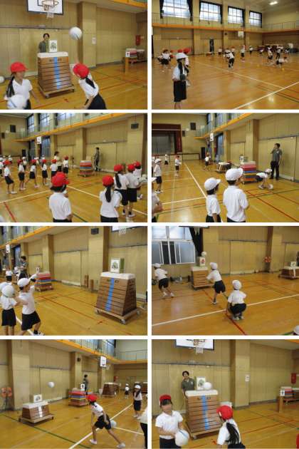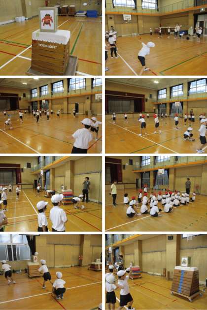 最後に、うまくボールを投げて、とび箱の上のモンスターを倒すことができるか挑戦しました。