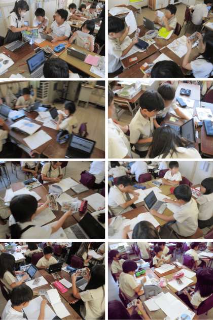教室に戻って、消防署の見学でわかったことをまとめています。