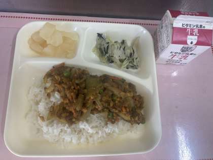 「大豆入りキーマカレーライス」は、牛ひき肉、豚ひき肉、鉄が豊富に含まれている豚レバー(チップ)、大豆(ひきわり)などを使用しています。