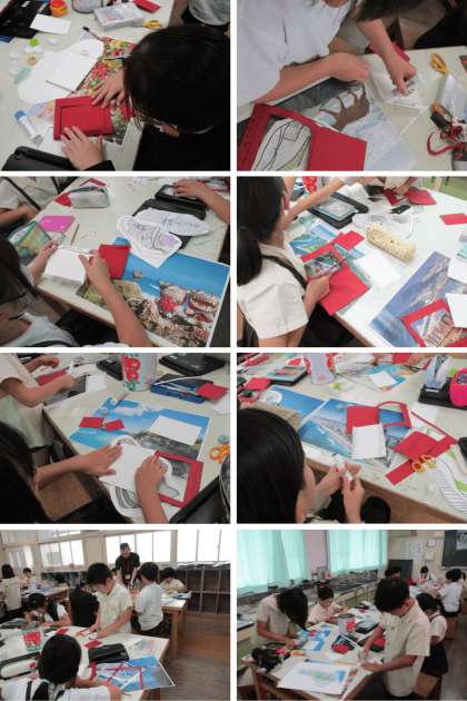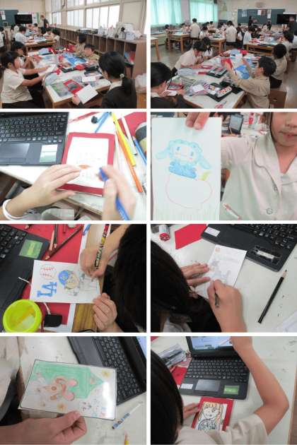 図工科の時間は、フォトフレームから絵をひっぱり出すと、白黒の絵がカラーになる、不思議な「マジックフォトフレーム」を作りました。
