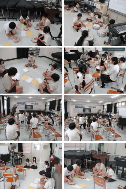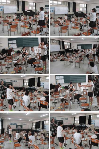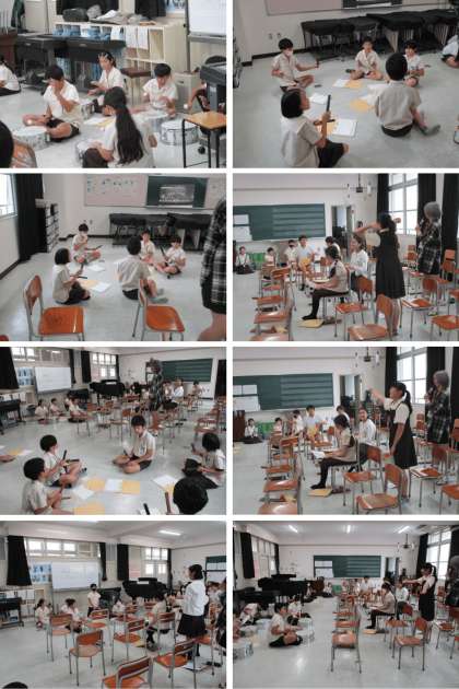 音楽科の時間は、「ハンドサインアンサンブル」に挑戦しました。