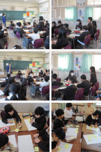 国語科の時間は、4つの漢字をヒントに□にどんな漢字が入るのかみんなで考えました。