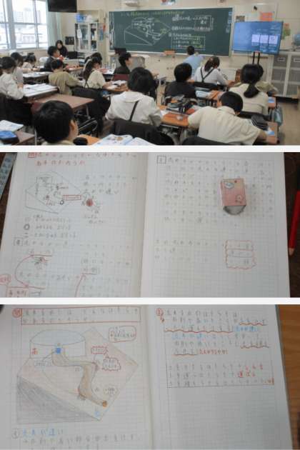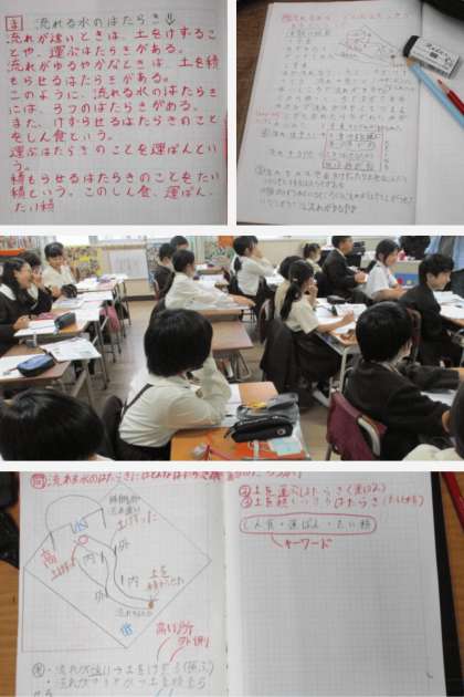 理科の時間は、流れる水にはどんなはたらきがあるのか、ノートにまとめました。