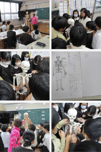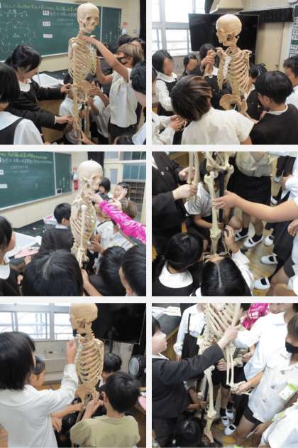 今日は、骨が体の中でどのように動き、どのような働きをしているかについて模型を見ながら学習しました。