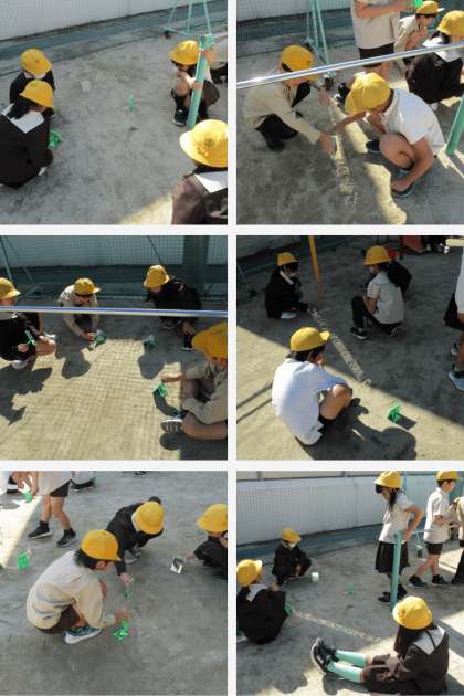 理科の時間は、日光を鏡で反射させ、グループで「光の道」をつなげる実験をしました。