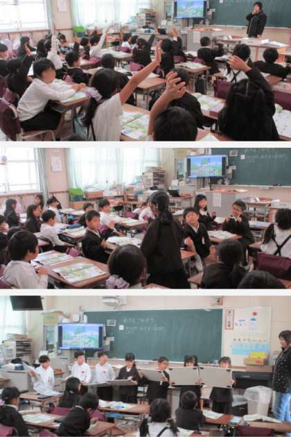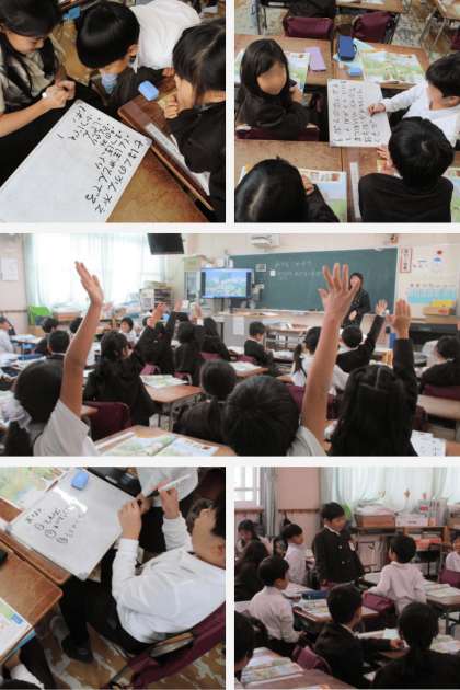生活科の時間は、教科書のイラストを見ながら、グループで「秋らしさ」を見つけて発表しました。