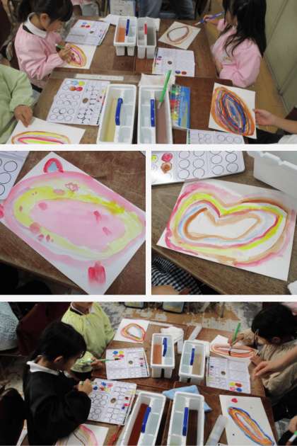 図工科の時間は、絵の具を使ってきれいな模様を描きました。