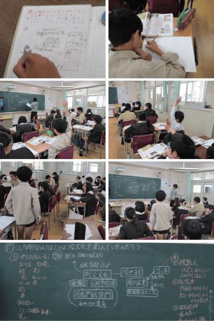 授業の後半は、わずか10か月の間にたくさんの作品を描いた浮世絵師、東洲斎写楽の正体について、3つの説をもとに自分ならどう考えるか話し合いました。