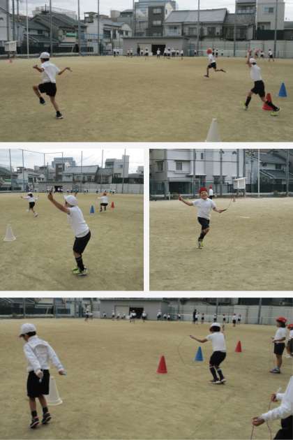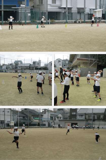 授業の後半には、チームに分かれてなわとびのリレーをしました。