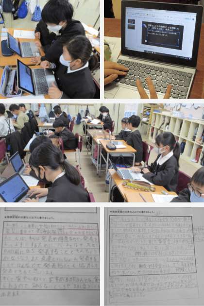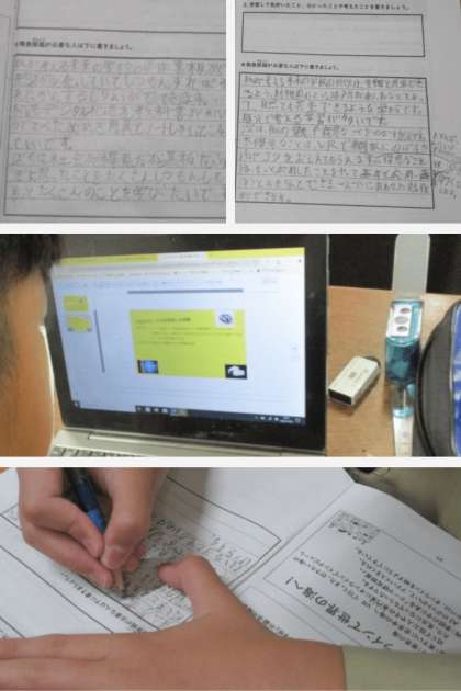 自分が考える「未来の学校」の発表原稿を書いて、その中のおすすめを1〜2つえらんでPCでスライドをつくります。